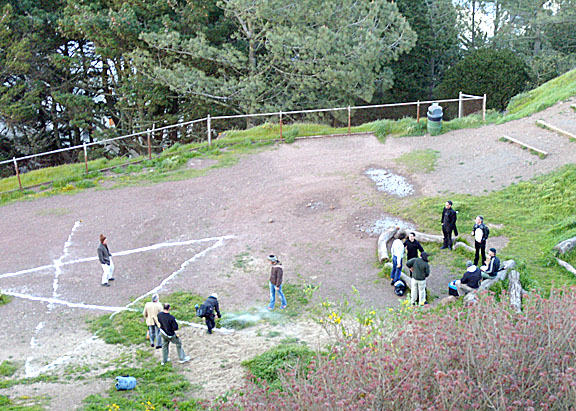 Gathering for the final class/ritual in the shelter of San Francisco's Corona Heights (aka Red Rock), above the City's Castro District.