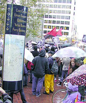 Not in Our Name - San FranciscoNovember 3rd March Denounces Greed, WarOver 3000 people marched through the streets of San Francisco on the day after the presidential election to denounce Bush's war on Iraq and his pandering to corporate greed. Across the US, marches and rallies for peace and justice took place in many other cities. Bookmark this site for updates.