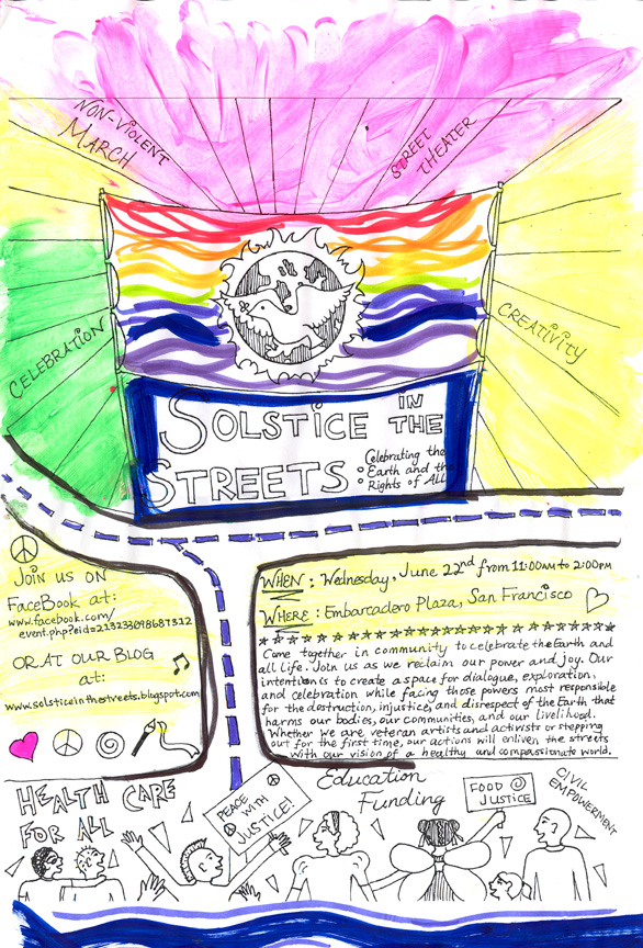 Posters for the action were created by Kaeli, and hand-colored by participants at the Teen Earth Magic retreat.