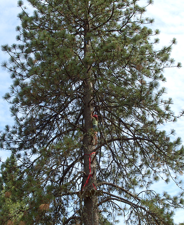 The teens' climbing gear was backed up by a safety line anchored by Fly, who climbed free-style sixty feet up the tree to anchor the ropes. One teacher commented that they felt more nervous driving people to camp than watching them 30 feet off the ground.